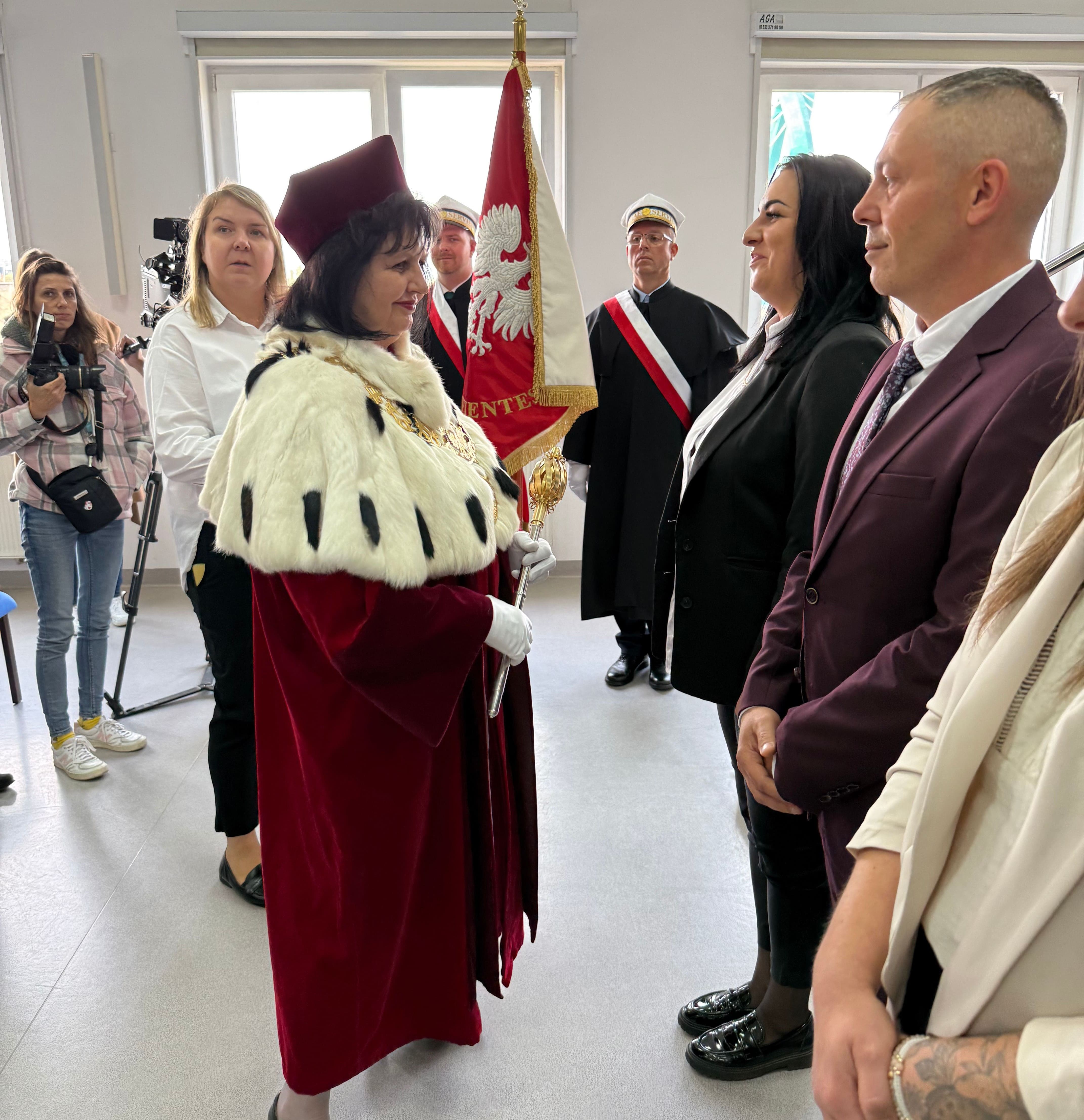 JM Rektor zwróciła się do zgromadzonych - (…) Rozpoczynając nowy rok akademicki, życzę Państwu, aby codzienna praca dawała satysfakcję, motywowała do podejmowania kolejnych inicjatyw i otwierała nowe perspektywy. Szczególne życzenia szybkiej adaptacji i satysfakcji kieruję do kadry kierowniczej i wykładowców rozpoczynających pracę w naszej Uczelni. Jak powiedział Henry Ford: „Jeśli wszycy razem idziemy naprzód, sukces zatroszczy się sam o siebie”.