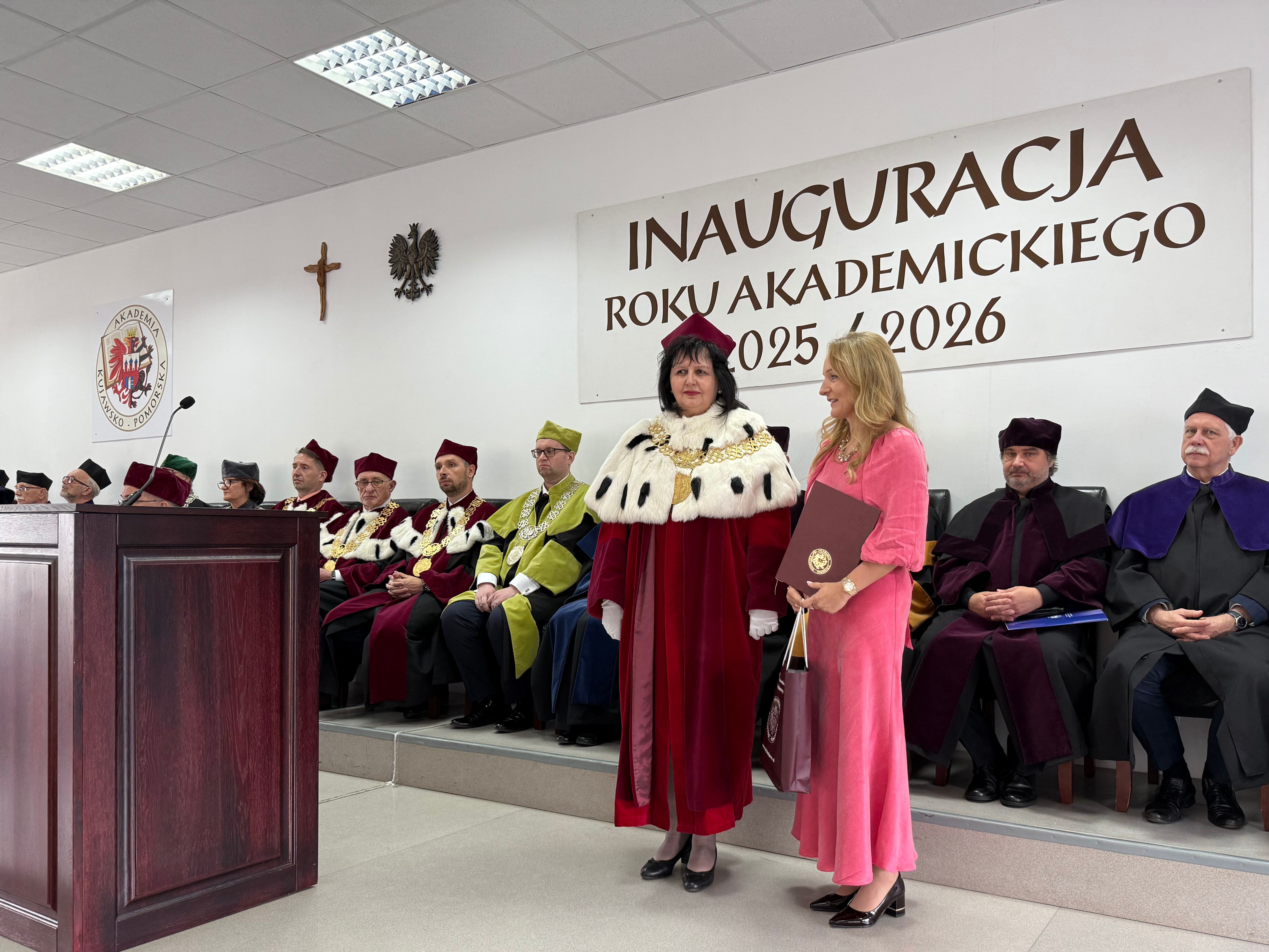 JM Rektor przytoczyła kilka osiągnięć minionego roku akademickiego - (…) Akademia Kujawsko-Pomorska nieustannie rozwija się zarówno w sferze naukowej jak i dydaktycznej. Wysoką rangę tego obszaru potwierdzają wyniki rankingów w 2025 roku. Według wyników XIX Rankingu Wydziałów Prawa GAZETY PRAWNEJ Kierunek „prawo” AKP zajął wysokie -3 miejsce wśród wszystkich uczelni niepublicznych w Polsce. Przez ostatnie pięć lat nasza Uczelnia zajmowała 2 lub 3 miejsce w kraju. Kapituła Rankingu oceniała uczelnie w czterech kategoriach: W dwóch kategoriach „kadra” oraz "jakość i siła kształcenia" AKP otrzymała I miejsce w kraju. Sukcesem również w ostatnim roku jest 100 procentowa zdawalność na aplikacje, to znaczy wszyscy nasi absolwenci kierunku Prawo, którzy podeszli do egzaminów na aplikacje adwokacką i radcowską - zdali – gratulujemy. Według rankingu uczelni wyższych Perspektywy, Akademia Kujawsko-Pomorska od lat znajduje się w czołówce uczelni niepublicznych w Polsce, czego potwierdzeniem jest zajęcie kolejny rok z rzędu I miejsca w Bydgoszczy i rejonie oraz 17 w kraju. Warto zaznaczyć, że w ramach kategorii warunki kształcenia AKP uplasowała się na 4. miejscu w Polsce a w kategorii potencjał naukowy na 5 miejscu w Polsce. Miłą niespodzianką było zajęcie 1-ego miejsca w rankingu najbardziej opłacalnych kierunków studiów w województwie, - opublikowanego w maju 2025 r. przez Business Insider, opartych na systemie monitorowania ekonomicznych losów absolwentów tzw. ELA. Według danych, w województwie kujawsko-pomorskim najwyższe miesięczne zarobki w pierwszym roku po dyplomie uzyskują absolwenci Akademii Kujawsko-Pomorskiej – kierunek pielęgniarstwo w wysokości 11,356 zł brutto (…).