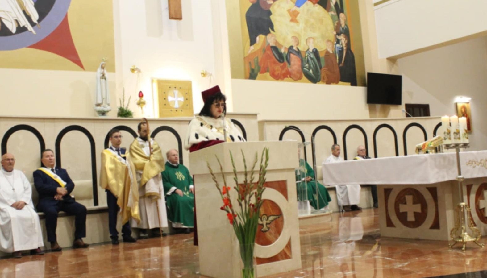 (…) A teraz pozwólcie, że zwrócę się do naszych nowo przyjętych studentów. Za chwilę złożycie akt ślubowania, który odzwierciedla wartości, takie jak prawda i ideały akademickie. Od tego momentu wspólnie będziemy dbać o godność, dobre imię i wizerunek naszej Alma Mater. Jak powiedział Nelson Mandela: „Edukacja jest najpotężniejszą bronią, której możesz użyć, aby zmienić świat.” Bądźcie otwarci na to miejsce i ludzi, których tu spotkacie. Korzystajcie mądrze z wiedzy i doświadczenia profesorów i wykładowców, którzy zawsze będą Was wspierać i motywować. Drodzy Studenci starszych roczników, życzę Wam dalszych sukcesów i niech ten nowy rok akademicki stanie się czasem realizacji Waszych najśmielszych planów, ambicji i pomysłów. Jak mówi John Dewey: „Edukacja nie jest przygotowaniem do życia; edukacja jest samym życiem.” Niech każdy dzień przynosi Wam inspirację i motywację do dalszego rozwoju – zakończyła przemówienie JM Rektor.