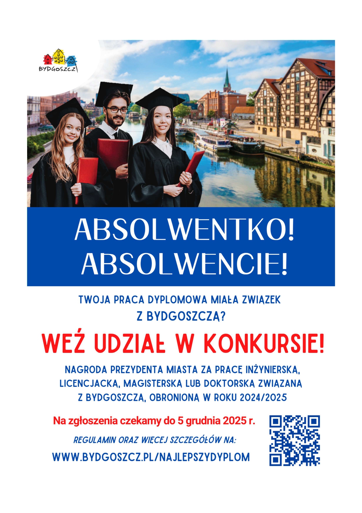 Termin zgłaszania prac upływa 5.12.2025 roku. Decyduje data wpływu do Urzędu Miasta Bydgoszczy. Szczegóły na stronie internetowej: www.bydgoszcz.pl